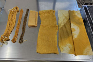 初心者向け草木染めワークショップを開催しました。場所は岡山駅からほど近い貸し施設です。 マリーゴールドの花とヤマモモの樹皮を煮出して黄色系、明るい色と暗い色に染 […]