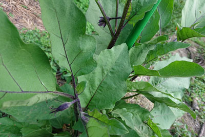2025年のナス栽培は、直まきには失敗したのですが、苗ポットで育てた苗を家庭菜園に定植して、夏の終わりから少し収穫できました。
