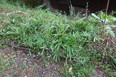 結局、位置を変えてもうまく育ちませんでした。この場所も、日当たり不足&土の栄養不足&笹の根が土壌に残っているせいでいまいちです。もっと土を育てる必要があります。