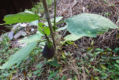 9月下旬、小さいながらもナスっぽくなりました。種採り用にすることに決めました。