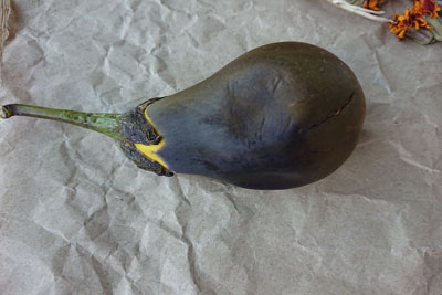12月上旬、ナスの実を採取しました。種採り用に乾燥させます。写真は採取10日前。
