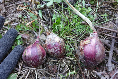 種採りした株のタマネギ部分。これは食べずに、藍畑の地面コンポストに入れました。