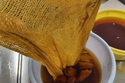 ステンレス寸胴鍋2個を使って煮出しました。