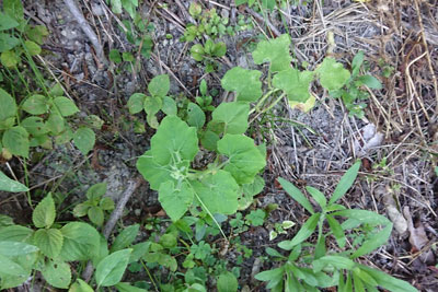 この芽はしっかりしていますが、ここは藍畑なので育てずに草マルチに使いました。