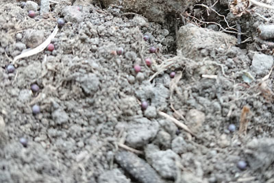 薄く土をかけて、靴底で踏んで鎮圧。菜の花は好光性です。
