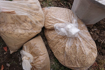 籾殻と米ぬかの温床にチャレンジしました。籾殻は秋に直売所で買った余り。米ぬかは精米機のご自由にどうぞ(無料)のもの。