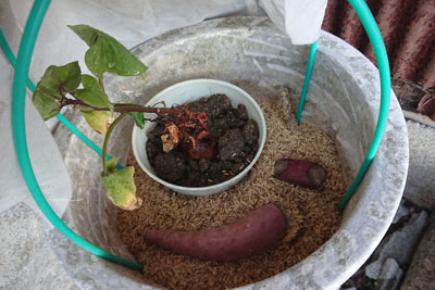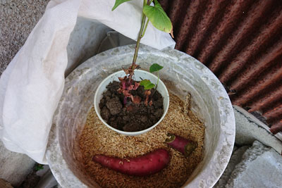 6日目、40度になったので、サツマイモを入れました。